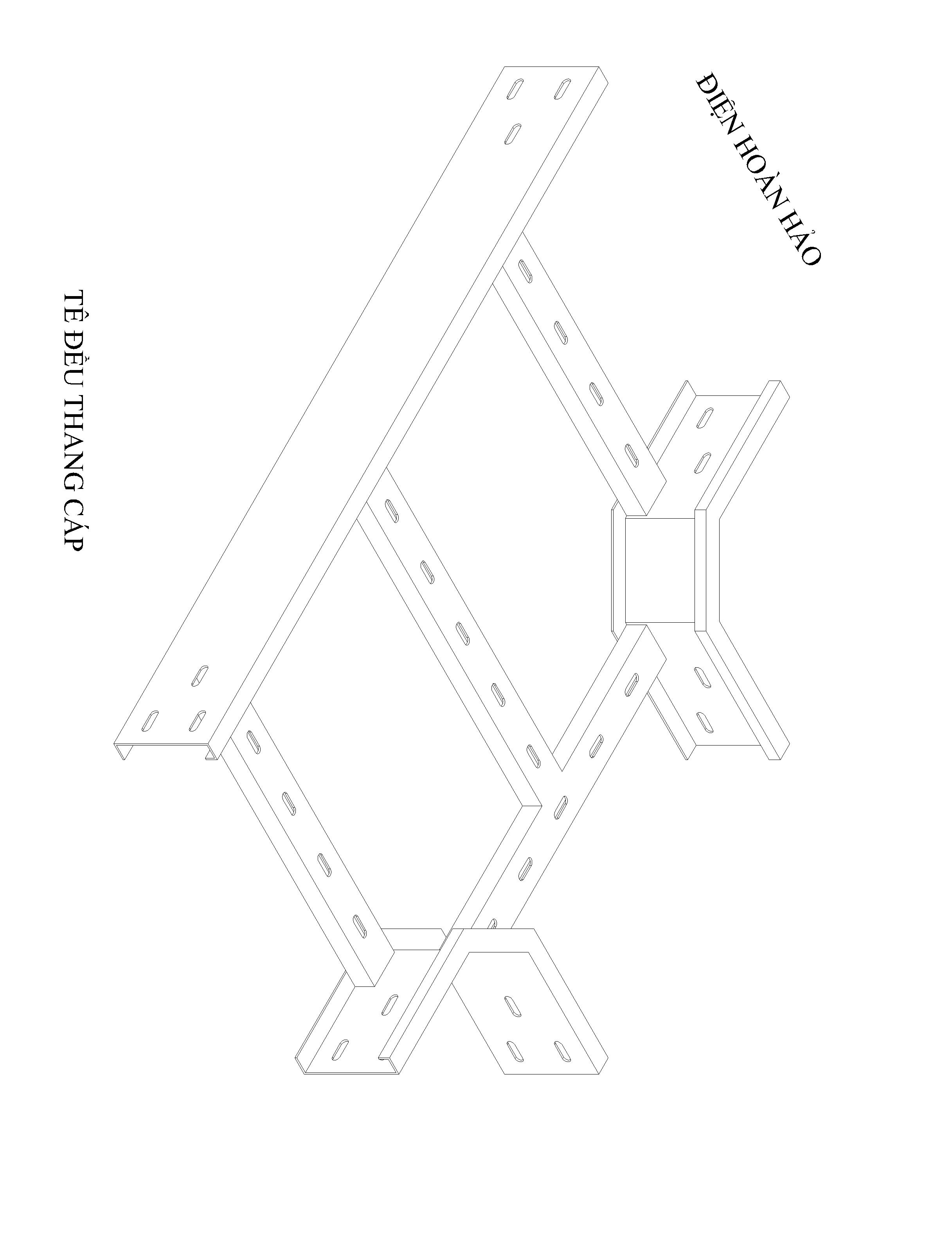 Co tê đều thang cáp cấu tạo bới hai cây rail, các góc 45độ thanh rail được dập trên máy đột CNC hoặc máy cắt Laser, hai cây rail được liên kết với nhau bới những cây thanh chia được chấn chữ C chắc chắn có chiều dài tương ứng chiều rộng kích thước thang, được hàn lại mối hàn míc bền đẹp, khoản cách giữa các cây thanh chia d=315mm.