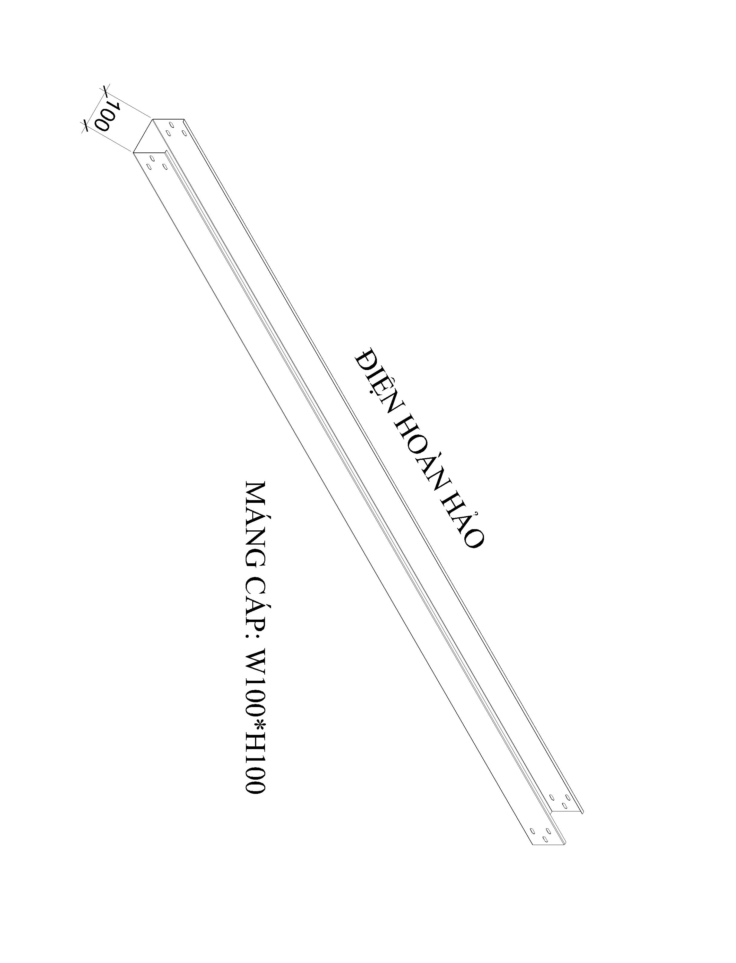 Máng cáp W100*H100 cấu tạo bởi theo hình chữ C, chiều rộng W=100mm và chiều cao H=100mm, sản xuất trên thép tấm được cắt theo kích thước phù hợp, sử dụng máy chấn chuyện dụng chấn vuông góc, sản xuất theo yêu cầu của chủ đầu tư, tư vấn thiết kế hoặc đơn vị thi công, mặt bên hông được dập lỗ điểm đầu và điểm cuối máng mục đích gắng bát nối và liên kết các cây máng lại với nhau, canh trên máng cạnh chấn thường chấn cạnh 10 đến 12mm dùng tăng cứng cây máng đồng thời gắng nắp máng giữ cố định.