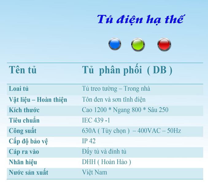 | Tên tủ | Tủ phân phối DB |