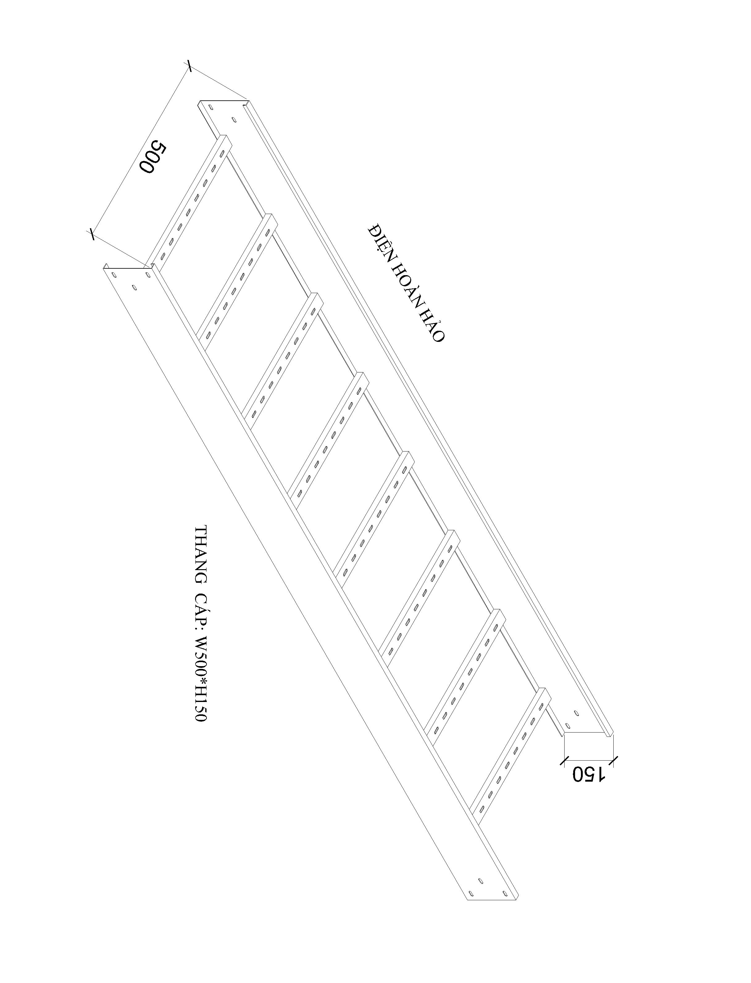 Thang cáp W500*H150 cấu tạo bới hai cây rail có chiều cao H150 và chiều dài L=2500mm, hai cây rail được liên kết với nhau bới những cây thanh chia được chấn chữ C chắc chắn có chiều dài W500, được hàn lại mối hàn míc bền đẹp, khoản cách giữa các cây thanh chia d=315mm.