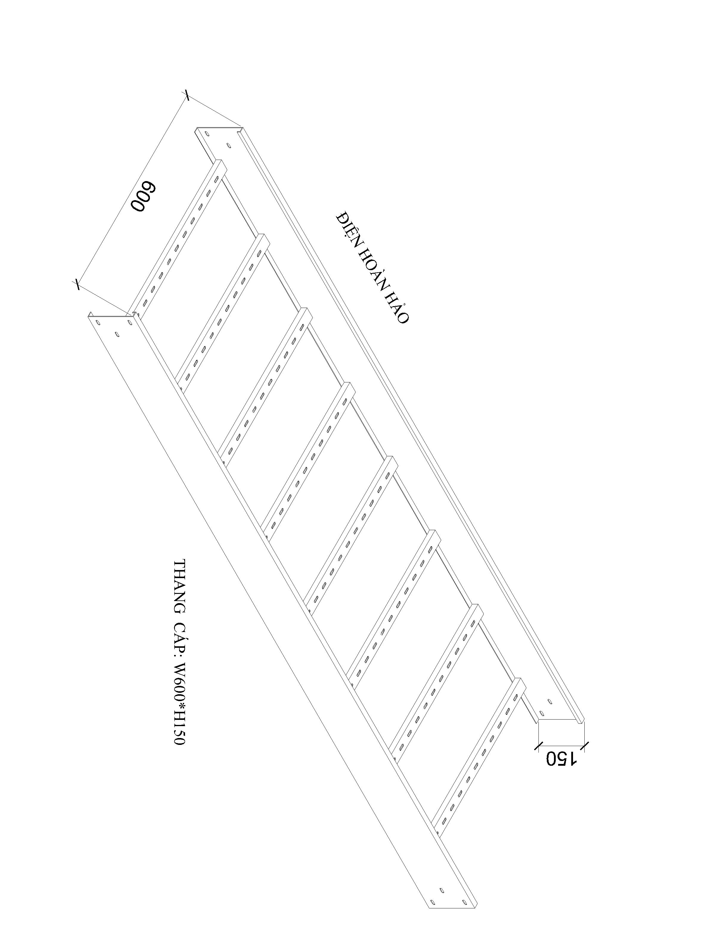 Thang cáp W600*H150 cấu tạo bới hai cây rail có chiều cao H150 và chiều dài L=2500mm, hai cây rail được liên kết với nhau bới những cây thanh chia được chấn chữ C chắc chắn có chiều dài W600, được hàn lại mối hàn míc bền đẹp, khoản cách giữa các cây thanh chia d=315mm.