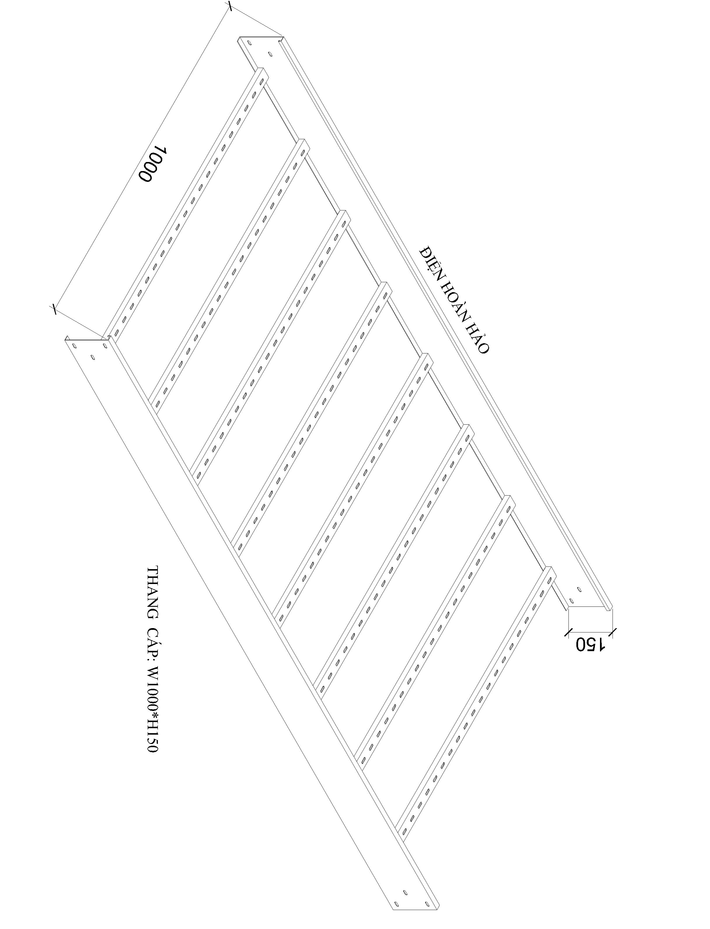 Thang cáp W1000*H150 cấu tạo bới hai cây rail có chiều cao H150 và chiều dài L=2500mm, hai cây rail được liên kết với nhau bới những cây thanh chia được chấn chữ C chắc chắn có chiều dài W1000, được hàn lại mối hàn míc bền đẹp, khoản cách giữa các cây thanh chia d=315mm.