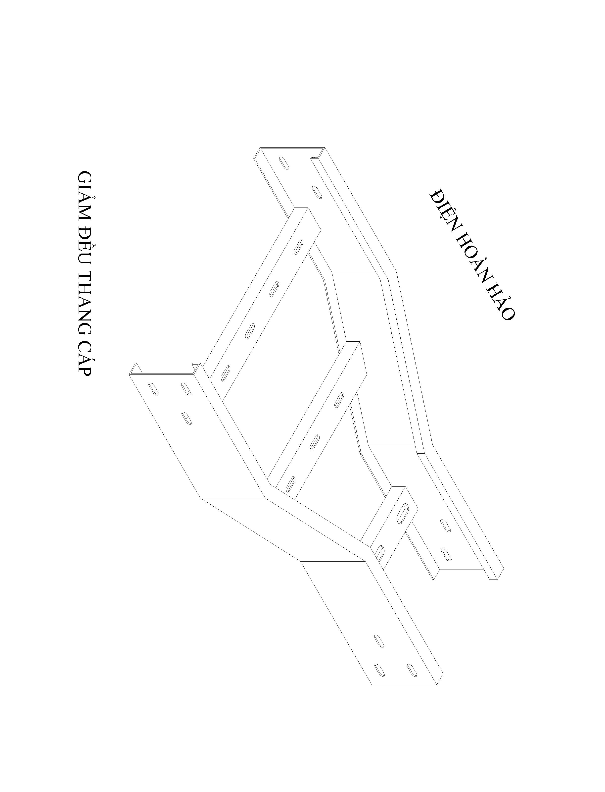 Co giảm đều thang cáp cấu tạo bới hai cây rail, các góc 45độ thanh rail được dập trên máy đột CNC hoặc máy cắt Laser, hai cây rail được liên kết với nhau bới những cây thanh chia được chấn chữ C chắc chắn có chiều dài tương ứng chiều rộng kích thước thang, được hàn lại mối hàn míc bền đẹp, khoản cách giữa các cây thanh chia d=315mm.