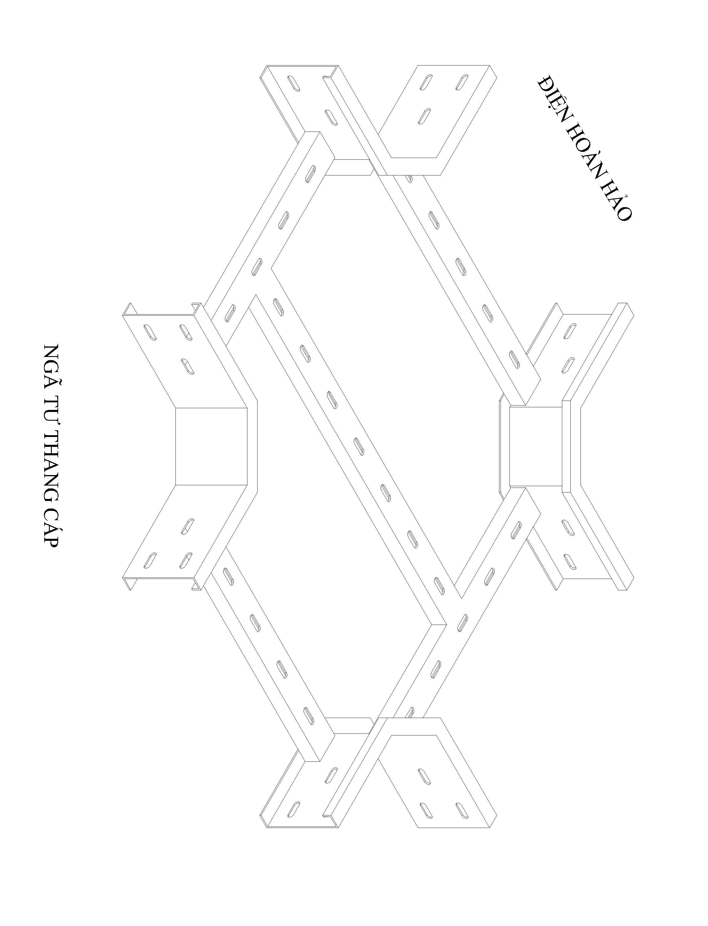 Co ngã tư thang cáp cấu tạo bới hai cây rail, các góc 45độ thanh rail được dập trên máy đột CNC hoặc máy cắt Laser, hai cây rail được liên kết với nhau bới những cây thanh chia được chấn chữ C chắc chắn có chiều dài tương ứng chiều rộng kích thước thang, được hàn lại mối hàn míc bền đẹp, khoản cách giữa các cây thanh chia d=315mm.