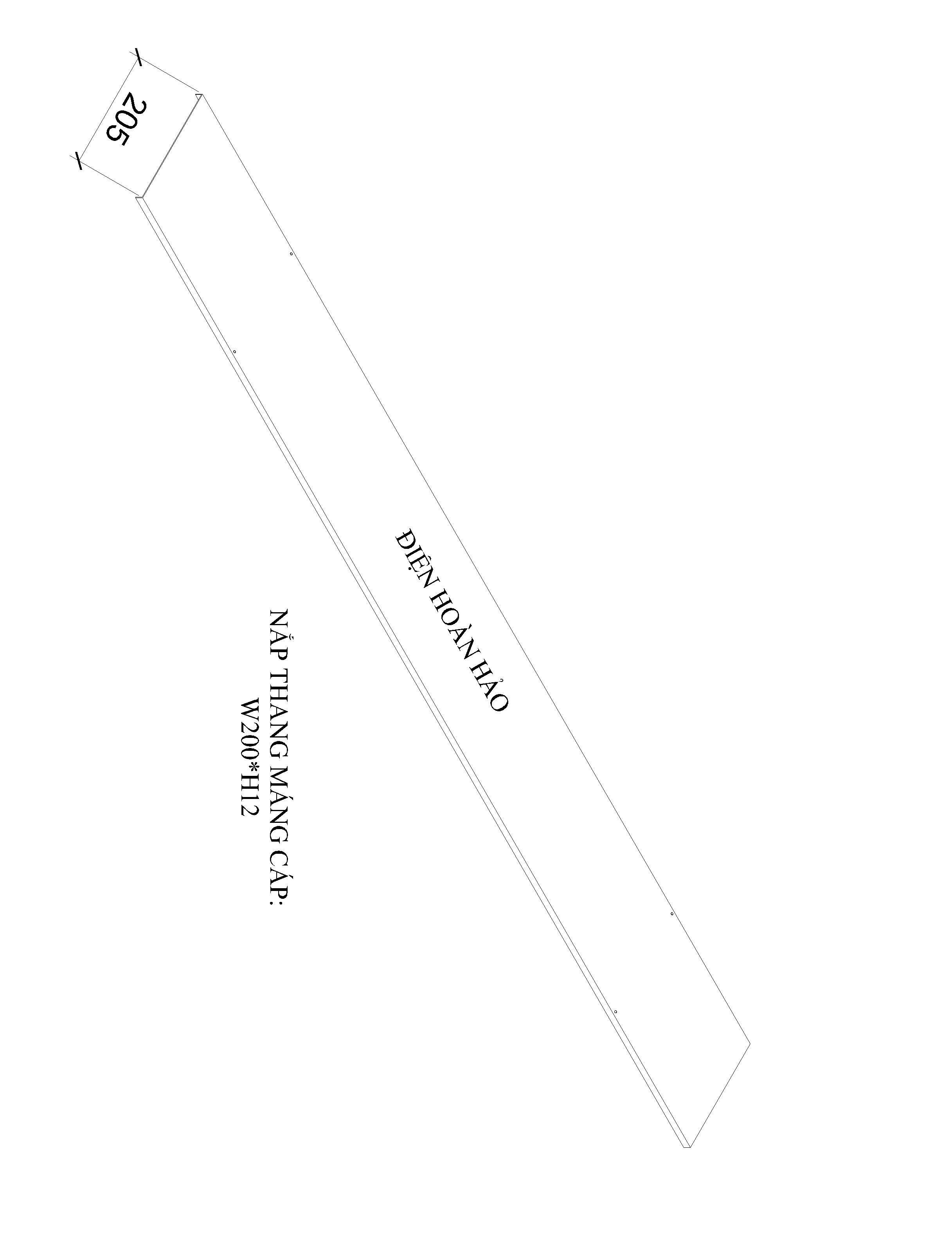 Nắp thang cáp W200 cấu tạo bởi theo hình chữ U, sản xuất trên thép tấm được cắt theo kích thước phù hợp với chiều rộng thân máng cáp, khay cáp hoặc thân thang cáp chiều rộng phủ bì W205, mặt trên nắp được đánh 4 lỗ dùng để bắt vít cố định khi đậy nắp với thân thang cáp hoặc máng cáp, hai cạnh bên dùng máy chấn chuyện dụng chấn vuông góc cạnh chấn thường chấn cạnh 10 đến 12mm.